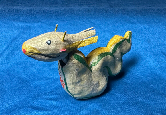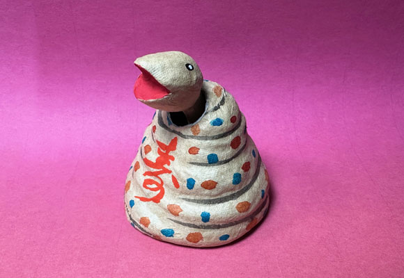 巳年:2025年 昨年と同様の生成?の和紙で今までにない張り子です。 なかなか巳年の造形は微妙なことが多いのですが、今回は可愛らしい感じに仕上がっています。 2024年は還暦からの仕事も一段落して新たなステージになった感じで、だいぶ環境も精神面でもストレスがなくなったものの、逆にそのギャップに悩まされたような一年でした。 もうこれでいいのだ、と何人の方々にも言ってもらっていたんですが、なかなか・・・・ 2025年はもうちょっと気負いを外して気を楽に生きていきたいと思います。 |